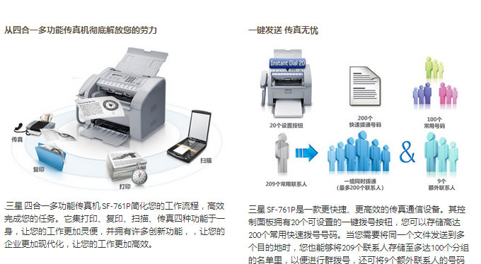 三星 SF-761P 黑白激光傳真多功能一體機 A4 (打印、復(fù)印、掃描、傳真)