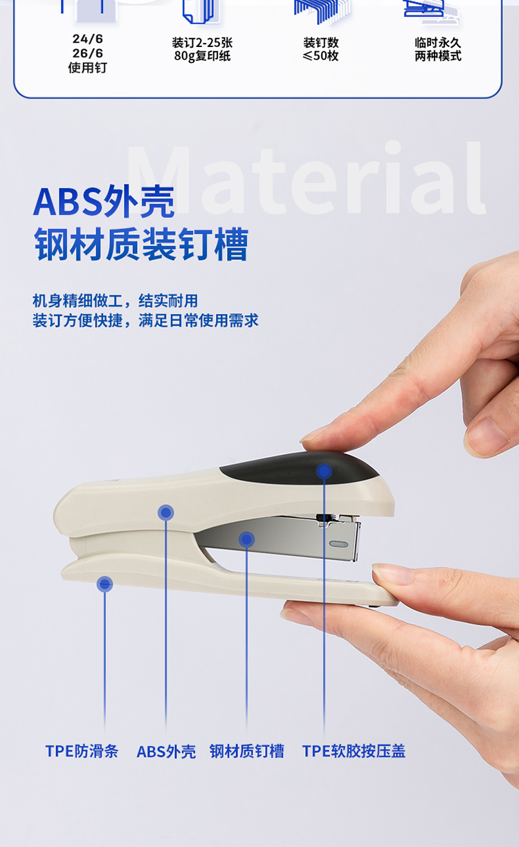 得力 0305 輕巧便攜訂書機 12# 藍色 25頁