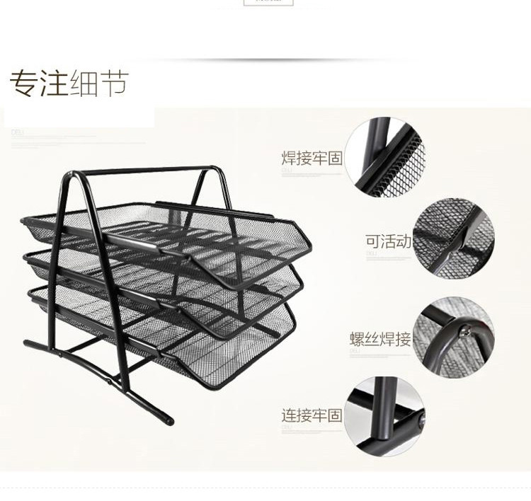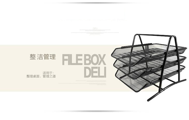 得力 9181 三層金屬網(wǎng)狀文件盤 黑色