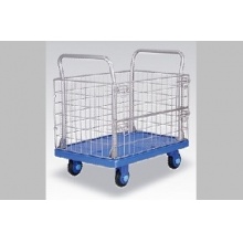 連和?靜音手推車由塑料車板、粉體涂裝扶手(可折倒、固定)、靜音腳輪(尼龍支架、鐵板支架)等組成。